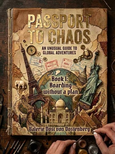 For Valerie Dost von Dostenberg, travel isn’t just about the destination—it’s about the glorious, wine-stained, and often humiliating collision between a Type-A soul and a world that refuses to follow a plan. From the champagne-soaked cabins of international flights to the damp foxholes of the Ardennes, Passport to Chaos is a witty, irreverent, and deeply human masterclass in the art of the "scenic identity crisis."