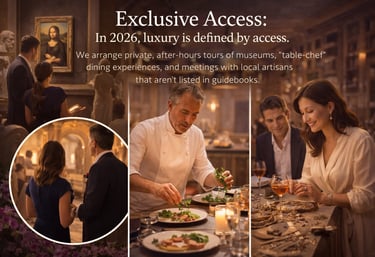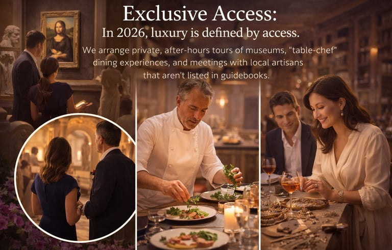 Exclusive Access: In 2026, luxury is defined by access. We arrange private, after-hours tours of museums, "table-chef" dining experiences, and meetings with local artisans that aren't listed in guidebooks.